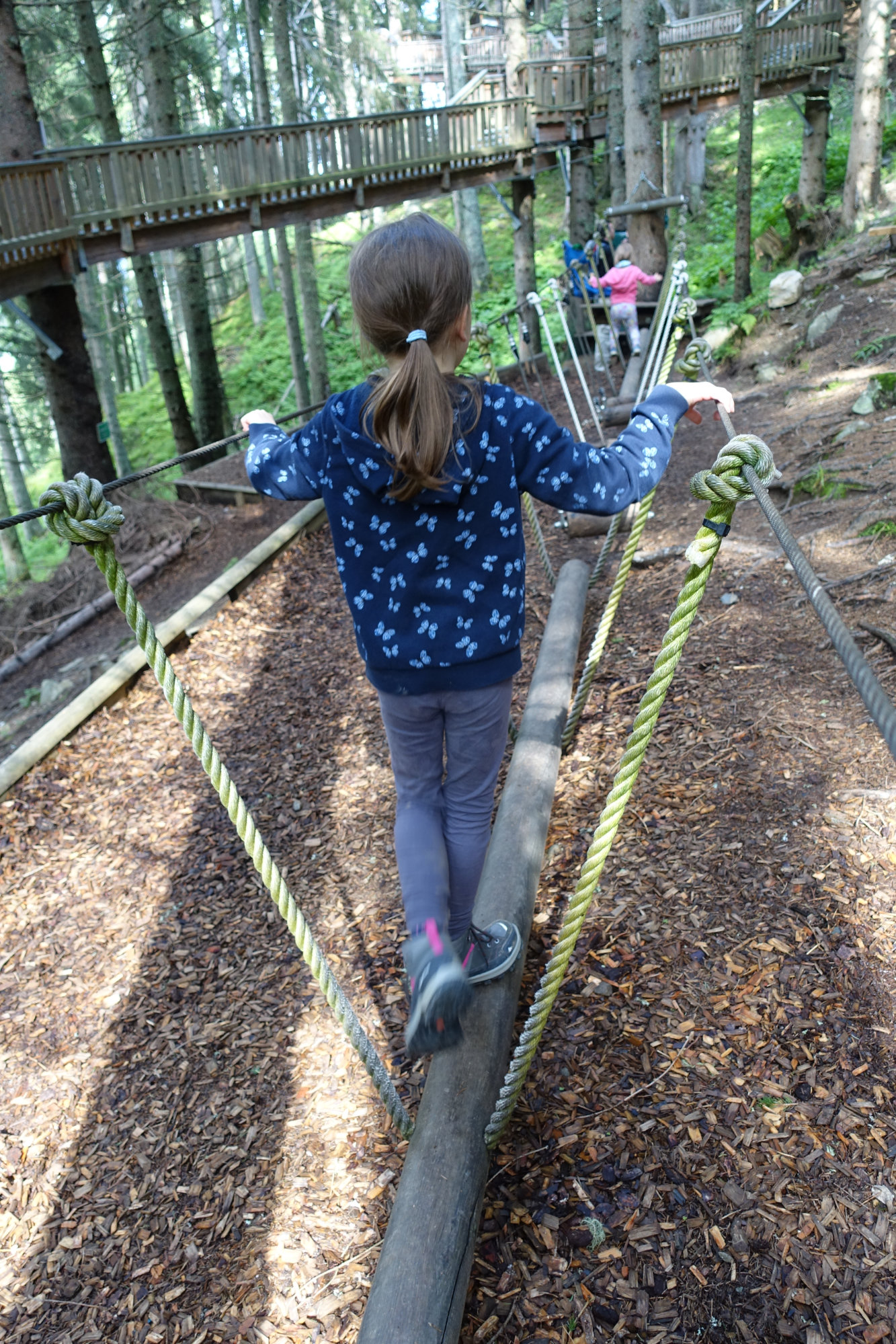 • „Golden Gate Bridge der Alpen“ und Baumzipfelweg (hier wird man mit grünen Zipfelmützen ausgestattet, die die Kinder mit Begeisterung getragen haben). Auf dem Baumzipfelweg gibt es viele schöne Spielstation für kleine und große Kinder
