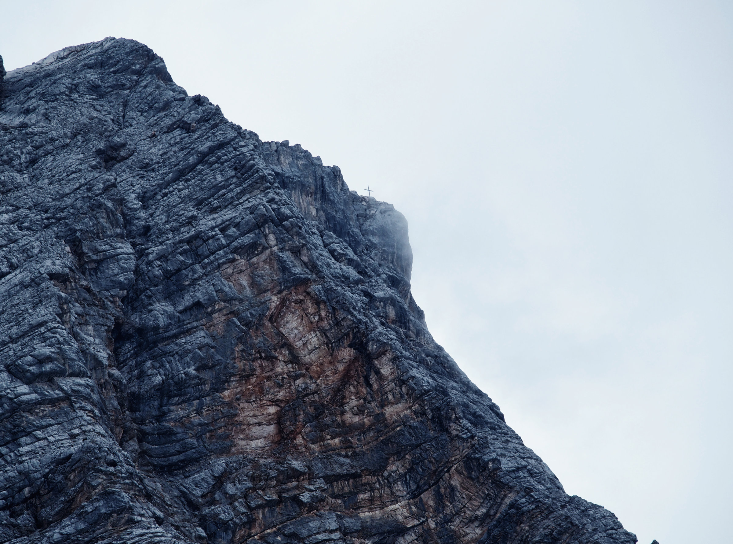 An der Scharte sehe ich ein paar hundert Meter entfernt die Seekofelhütte, aber mich zieht es rauf auf den Gipfel. Daher geht es weiter hinauf, ein bisschen leichte Kletterei und da kommt der Italiener mir bereits entgegen und ermutigt mich „brava, brava“. Endlich erreiche ich den Gipfel auf 2810hm – aber ich sehe nur weiße Wolken. Wie schade, das Panorama soll gigantisch sein. Hier oben kühle ich während meiner Pause ganz schnell aus und ziehe mir daher für meine Mittagspause alles an, was ich dabei habe. Das warten lohnt sich zum Glück auch, denn zumindest reißen die Wolken etwas auf, so dass ich den Pragser Wildsee unter mir sehe. Wow! Was für ein grandioser Blick, es geht so steil abwärts. Mir ist aber zu kalt um noch länger zu warten, daher geht es für mich wieder hinab. Auf der Scharte sind nun ganz viele andere Wanderer, wie immer bin ich froh früh gestartet zu sein und etwas mehr Einsamkeit genossen zu haben.
