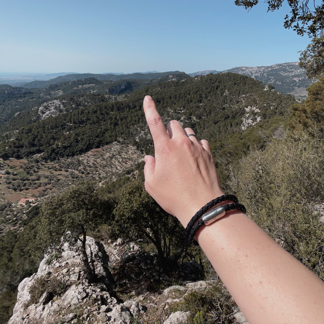 Bergig. Edel. Lässig. Das Bergseil Armband aus Leder ist das perfekte Accessoire für alle Bergsteiger*innen.