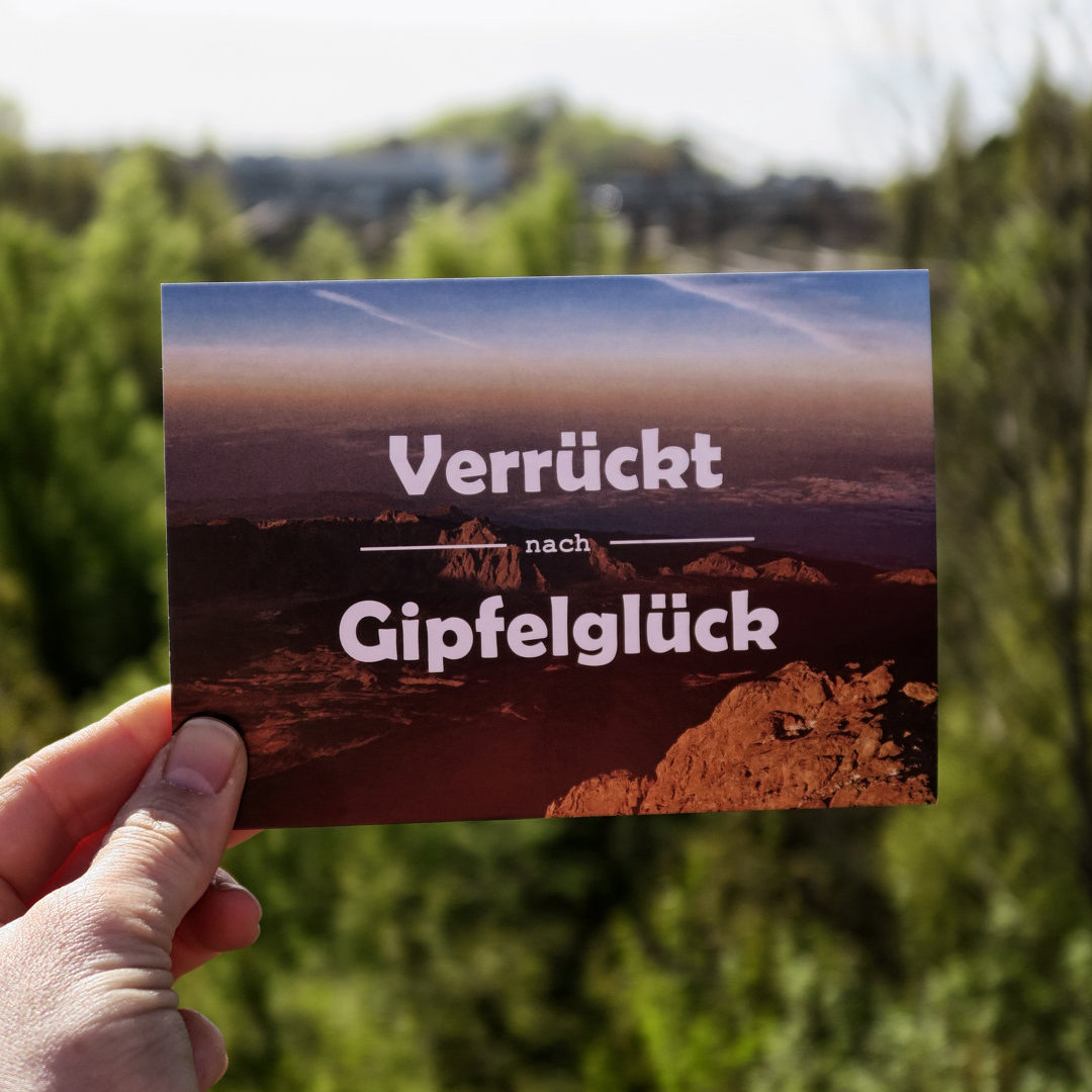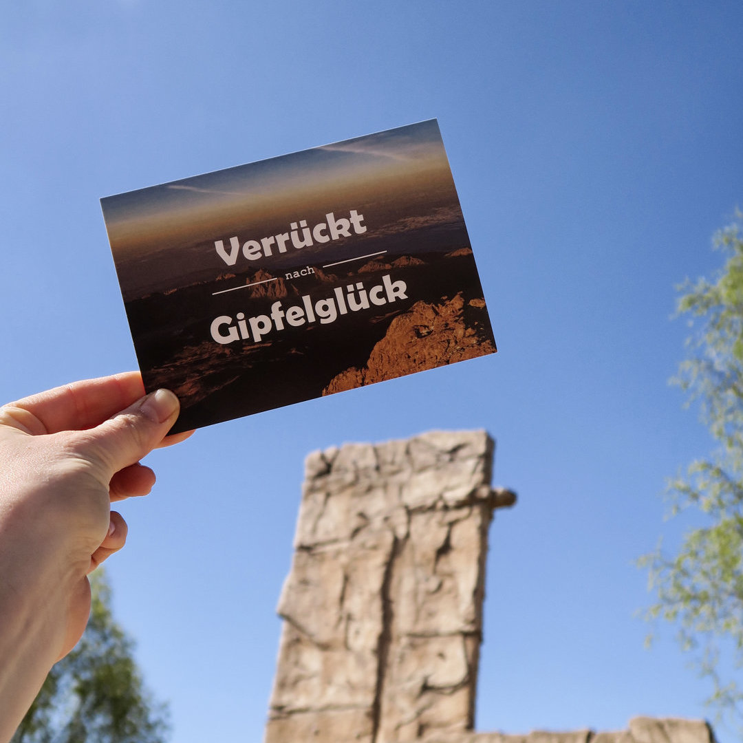 Die Postkarte für alle Gipfelstürmer und Bergfans: Verrückt nach Gipfelglück.