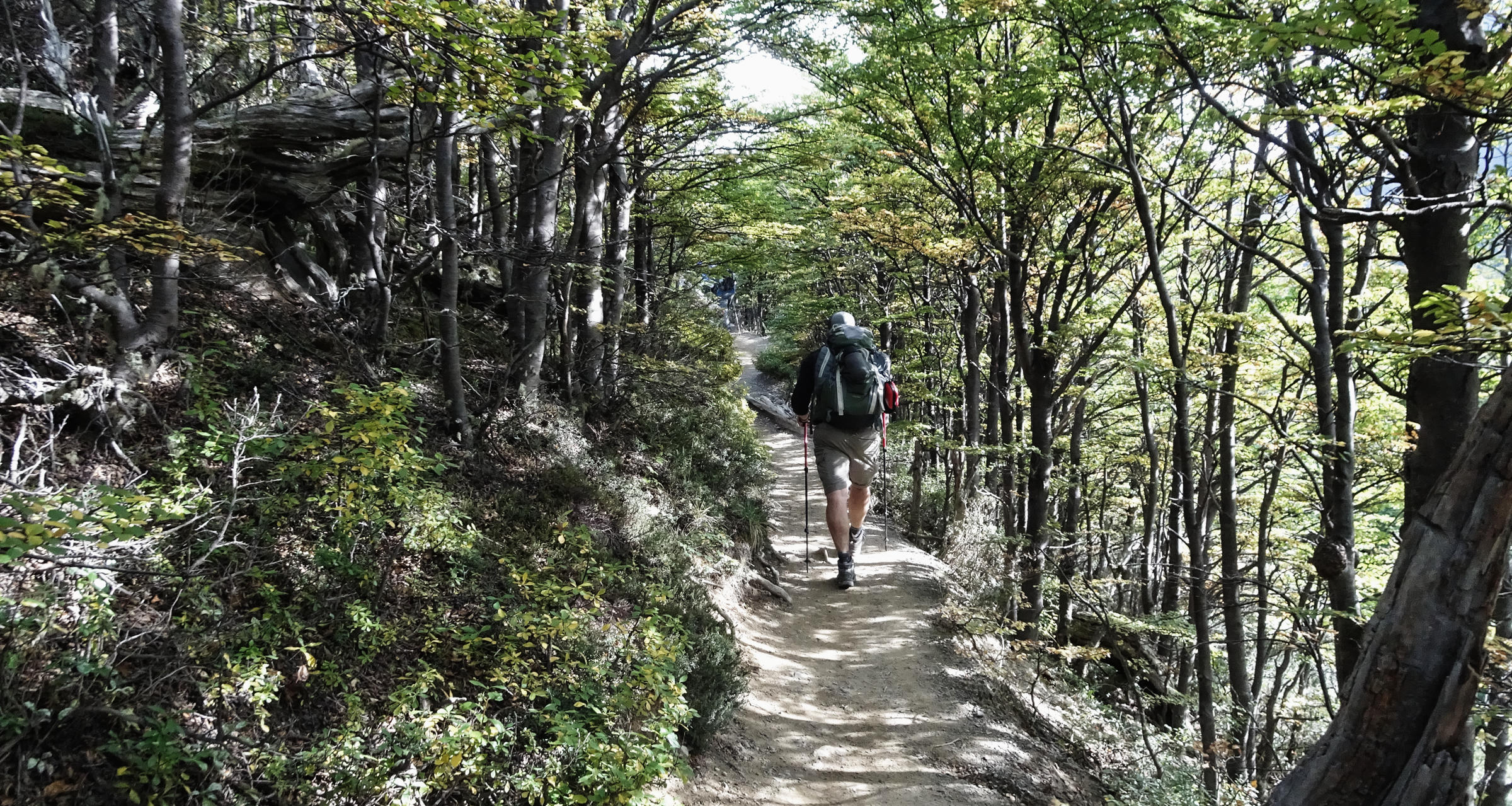 Ich mache eine kurze Pause, bevor ich um 12 Uhr weitergehe, Richtung Camping Italiano. Der Weg ist wieder einfach, nur leicht auf und ab. Die Wolken verschwinden langsam. Ich fühle mich sehr müde und beschließe, dass ich nur bis zum Campingplatz gehen werde, nicht auch noch die extra 6km rauf bis zum Aussichtspunkt (plus zurück). Aber als ich um 14 Uhr auf dem Campingplatz ankomme, sagt mir der Ranger, ich unbedingt zum Britannico Aussichtspunkt gehen muss. Also schnelles Mittagessen, Zelt aufbauen, Ausrüstung dalassen und mit wenig Gepäck geht’s los. Hoch und runter, über Flüsse, über Wurzeln hochziehen, durch Wald bis zum ersten Aussichtspunkt „Val de Frances“. Beeindrucken. Die Sonne scheint jetzt und fast keine Wolken mehr am Himmel, es ist einfach perfekt! Ich laufe jetzt schneller, da ich merke wie langsam man auf dem Weg vorankommt). Zum Glück wird es bald flacher und weniger anstrengend. Ich kann jetzt die Rückseite des berühmten Las Torres sehen. Die hellen Türme sind beeindruckender von hier, breiter, größer, höher, vor allem im Kontrast zu den bunten Herbstbäumen im Sonnenschein.