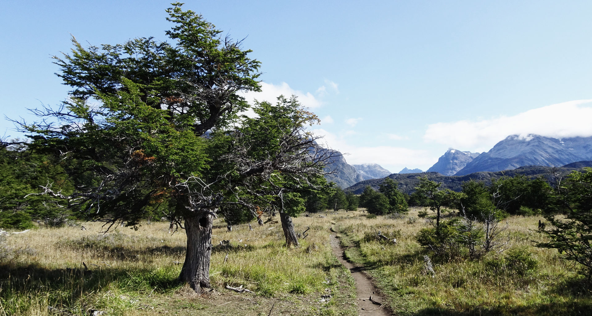 Der Weg ist einfach zu finden und zu gehen, bergauf, dann wieder runter zum Río del Paine und nun ganz flach bis ich nach 3h schon den Seron Campingplatz erreiche. Ich mache eine Pause und esse ein Sandwich. Ein paar Wanderer sind noch da, obwohl es bereits 11 Uhr ist und so kann ich mich noch mit einem australischen Pärchen unterhalten. Auf dem Zeltplatz haben letzte Nacht einige Mäuse die Camper wachgehalten.