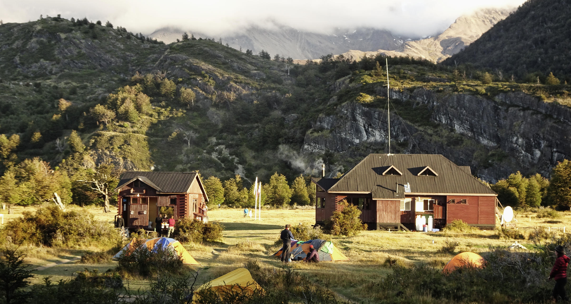 Ich finde ein geschütztes Plätzchen für mein Zelt und da die Welt so klein ist treffe ich beim Abendessen auf zwei gute Reisebekanntschaften. So wird der Abend gemütlich im Bistro der Las Torres Hütte beendet – bei einem Liter Wein!