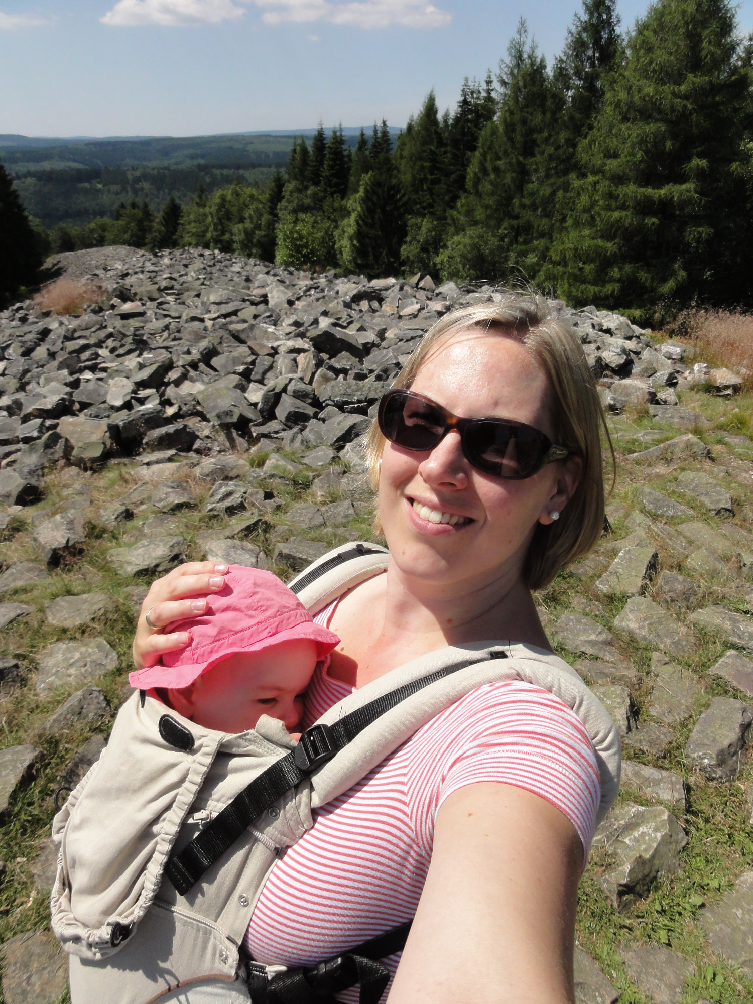 Wer also auch auf richtigen Wanderwegen unterwegs sein möchte, für den kommt eigentlich nur Tragen in Frage. Babys und jüngere Kleinkinder (bis 1,5 oder 2 Jahre) werden am besten im Tragetuch oder in einem Babytragesystem (z.B. Manduca) getragen. Meiner persönlichen Meinung nach lassen sich auch 2-3 Jährige noch hervorragend in einem guten und in der Größe geeigneten Babytragesystem transportieren. Etwas „ältere“ Kleinkinder (meiner Einschätzung nach frühestens ab 1,5 Jahren) können auch einer Rückentrage / Kraxe getragen werden.