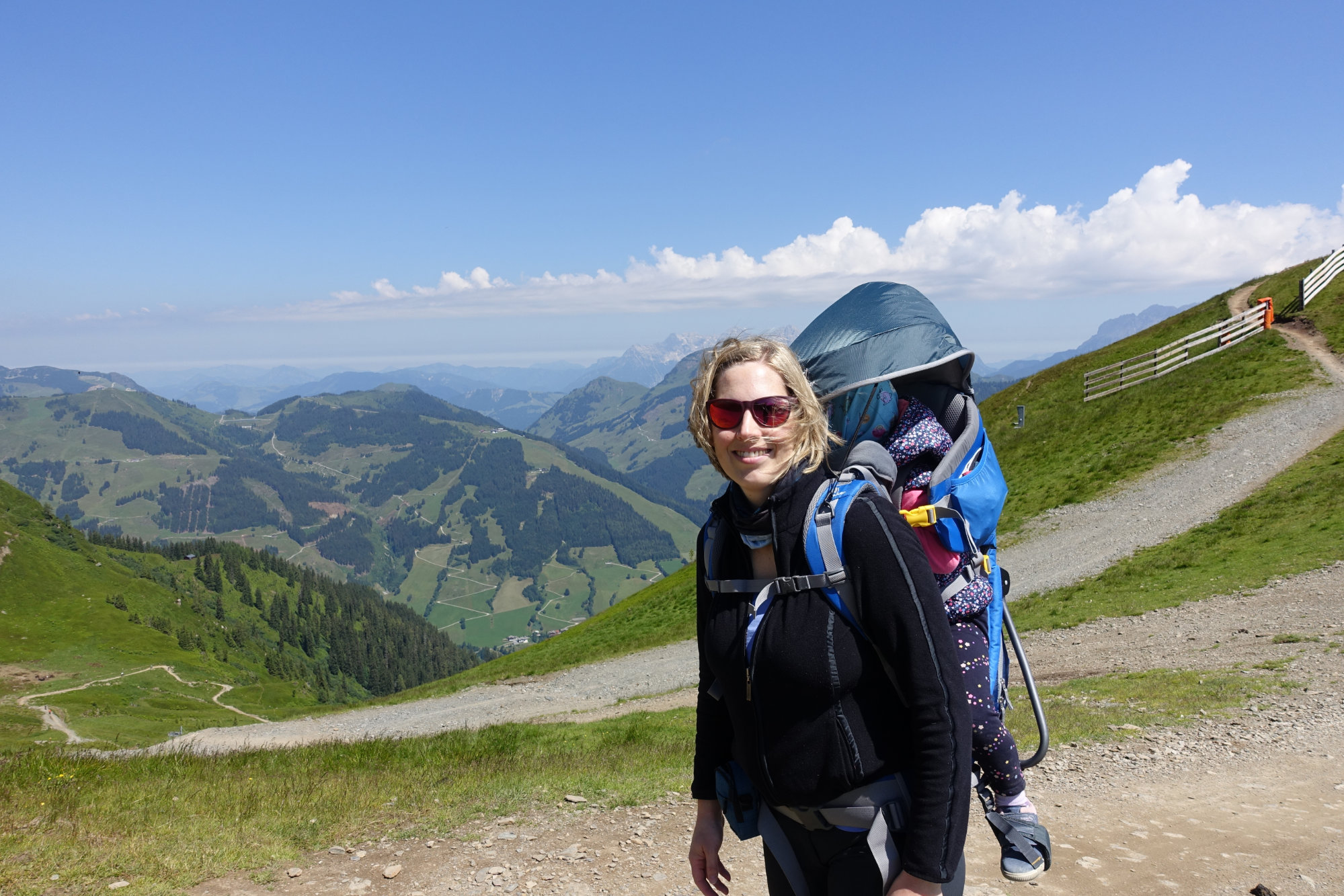Grundsätzlich gibt es zwei Optionen: Schieben oder Tragen. Es gibt Kinderwagen / Jogger, die auch für Bergwege geeignet sind. In der Regel sind das dreirädrige sportliche Wagen (z.B. umbaubare Fahrradanhänger), die unbedingt für das Bergab-Gehen unbedingt über eine Handbremse verfügen sollten, und mit einer Handschlaufe gesichert werden können. Ein Wagen begrenzt einen beim Wandern jedoch auf eher flache und breite Schotterstraßen/Forstwege. Wir haben auch Kinderwagen (sogar normale!) auf steilen und schmalen Wanderwegen gesehen haben, das war offensichtlich keine Freude für die Beteiligten.