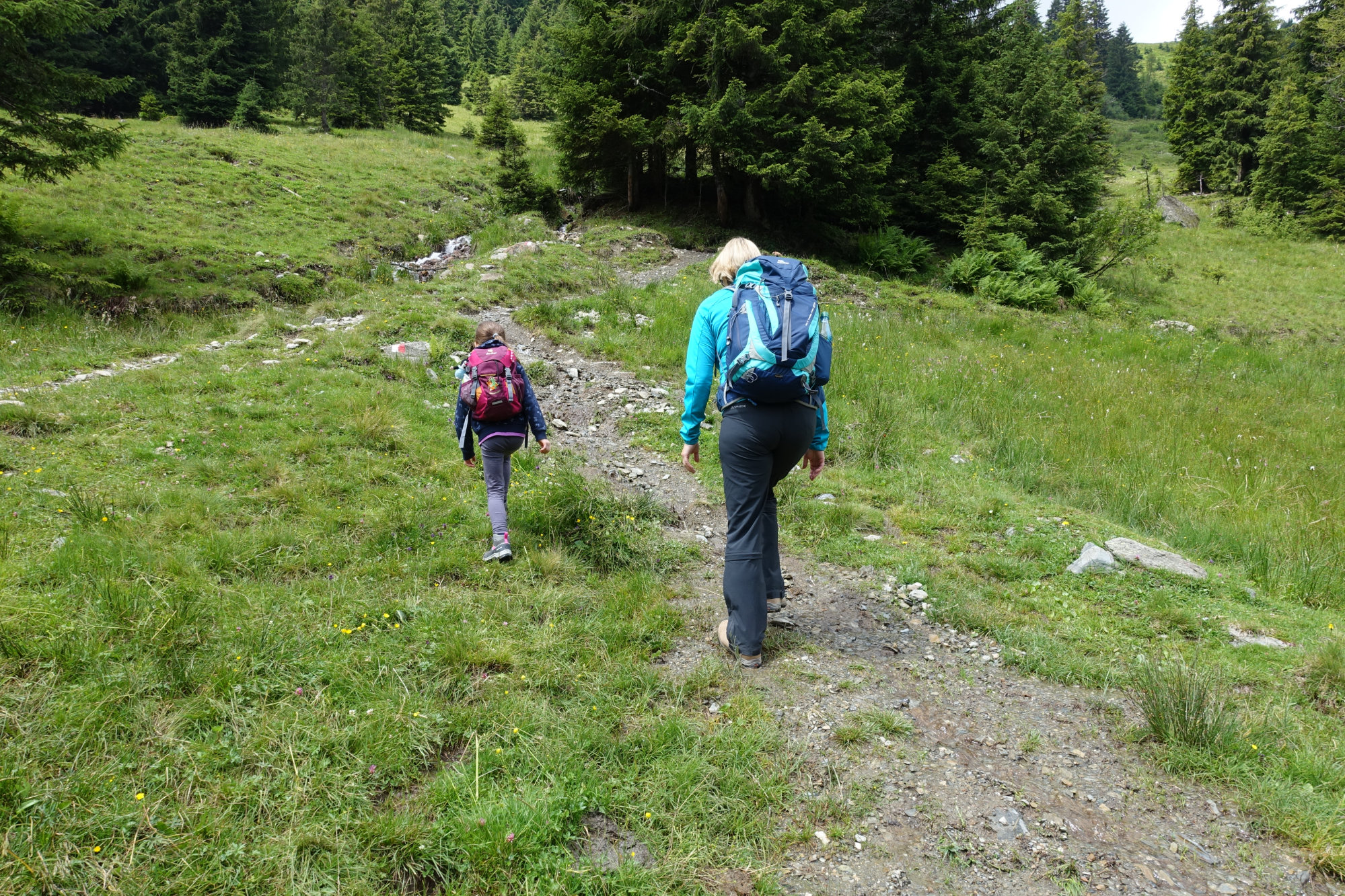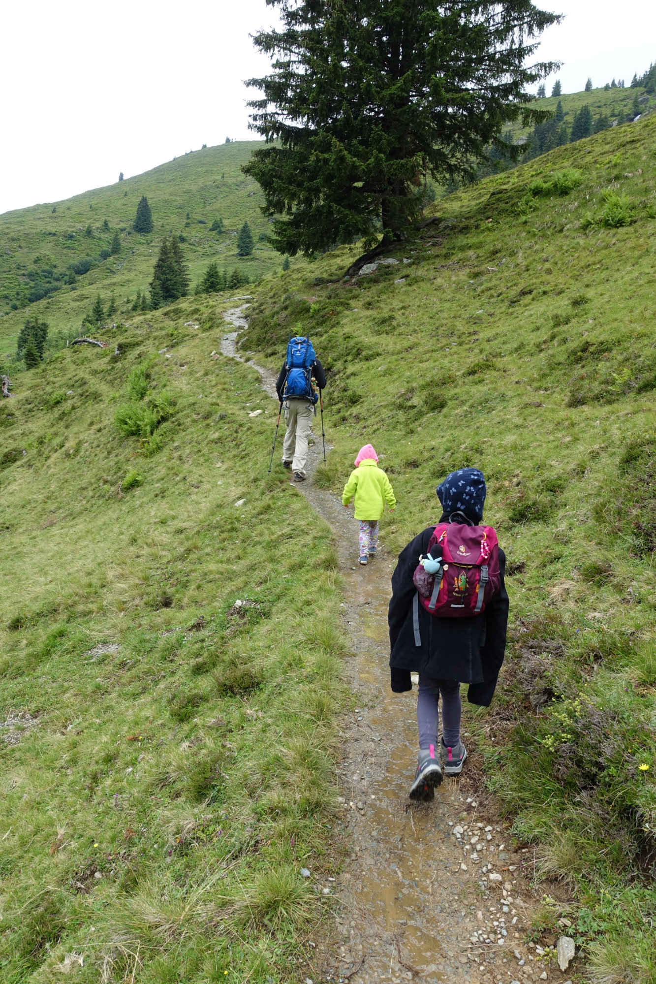 Bei uns hat auch die richtige Wanderausrüstung wahre Wunder gewirkt. Richtige Wanderschuhe und Wanderstöcke haben unserer Tochter das Gefühl gegeben, als Wandererin ernstgenommen zu werden. Außerdem können auch Kinder ab 4 oder 5 Jahre ihren eigenen Rucksack mit Wasserflasche und Regenjacke tragen.